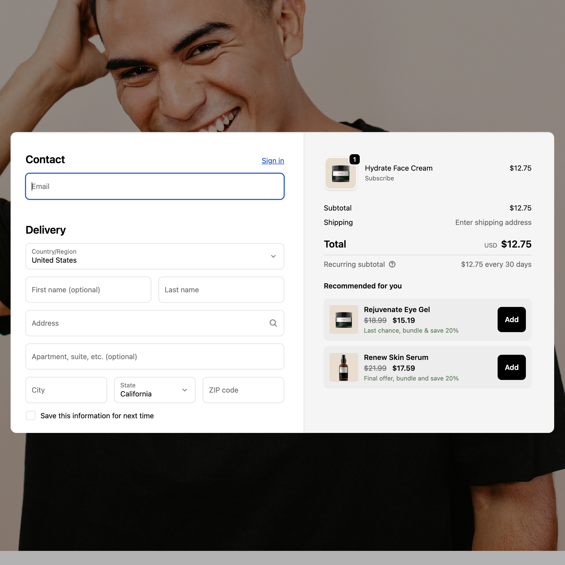 For everyone, our post-purchase upsells unlock the same revenue opportunity after the order is placed, where a well-timed deal can feel too good to pass up.